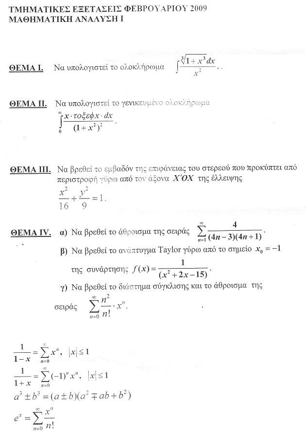 Θέματα Μαθηματική Ανάλυση Ι [Φεβρουάριος 2009]