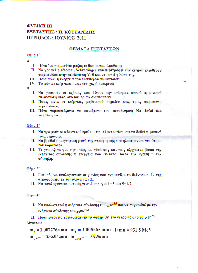 Αν μπορεί να μου πει κάποιος που παρακολόυθησε Φυσική ΙΙΙ, ποιος έκανε το μάθημα και ποιος θα βάλει θέματα?