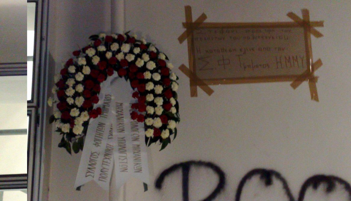 Τελικά, ο Σύλλογος Φοιτητών Τμήματος ΗΜΜΥ πήρε την απόφαση να αποχωρήσει από την εκδήλωση στα ΠΡΟΚΑΤ και να καταθέσει στεφάνι στη μνήμη των πεσόντων του 1973 στα νέα κτίρια: