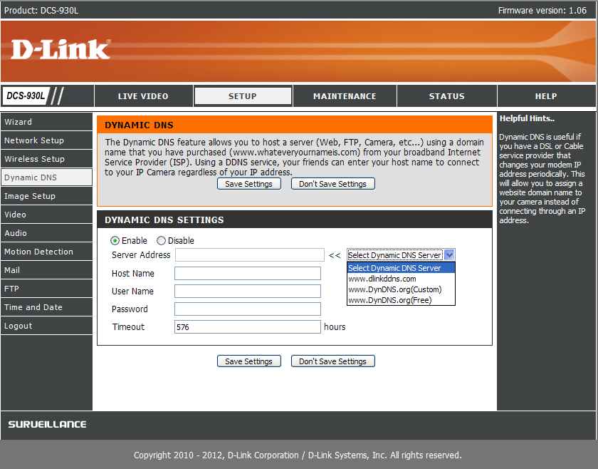 Προσπαθώ να στήσω μια κάμερα D-LINK DCS-930L με ddns. Έχω βρει μια υπηρεσία free ddns στο http://www.noip.com. Όμως η ρύθμιση dynamic dns στην κάμερα στο πεδίο server address