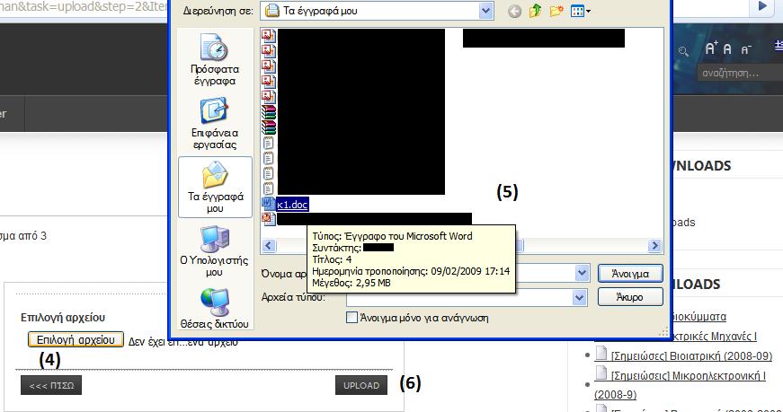 (5) Διαλέγουμε το αρχείο που θέλουμε να ανεβάσουμε (Προσοχή: Πρέπει να είναι κάτω από 20 MB)