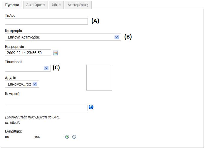 -> Είδος βάζουμε τι είναι αυτό που ανεβάσαμε π.χ. [Θέματα], [Σημειώσεις], [Εργαστήρια]