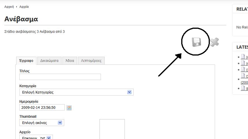Τέλος πατάμε τη δισκέτα πάνω δεξιά. Προσοχή! Εδώ γίνονται τα περισσότερα λάθη (συνήθως πατάτε υποβολή, κάτω δεξιά)