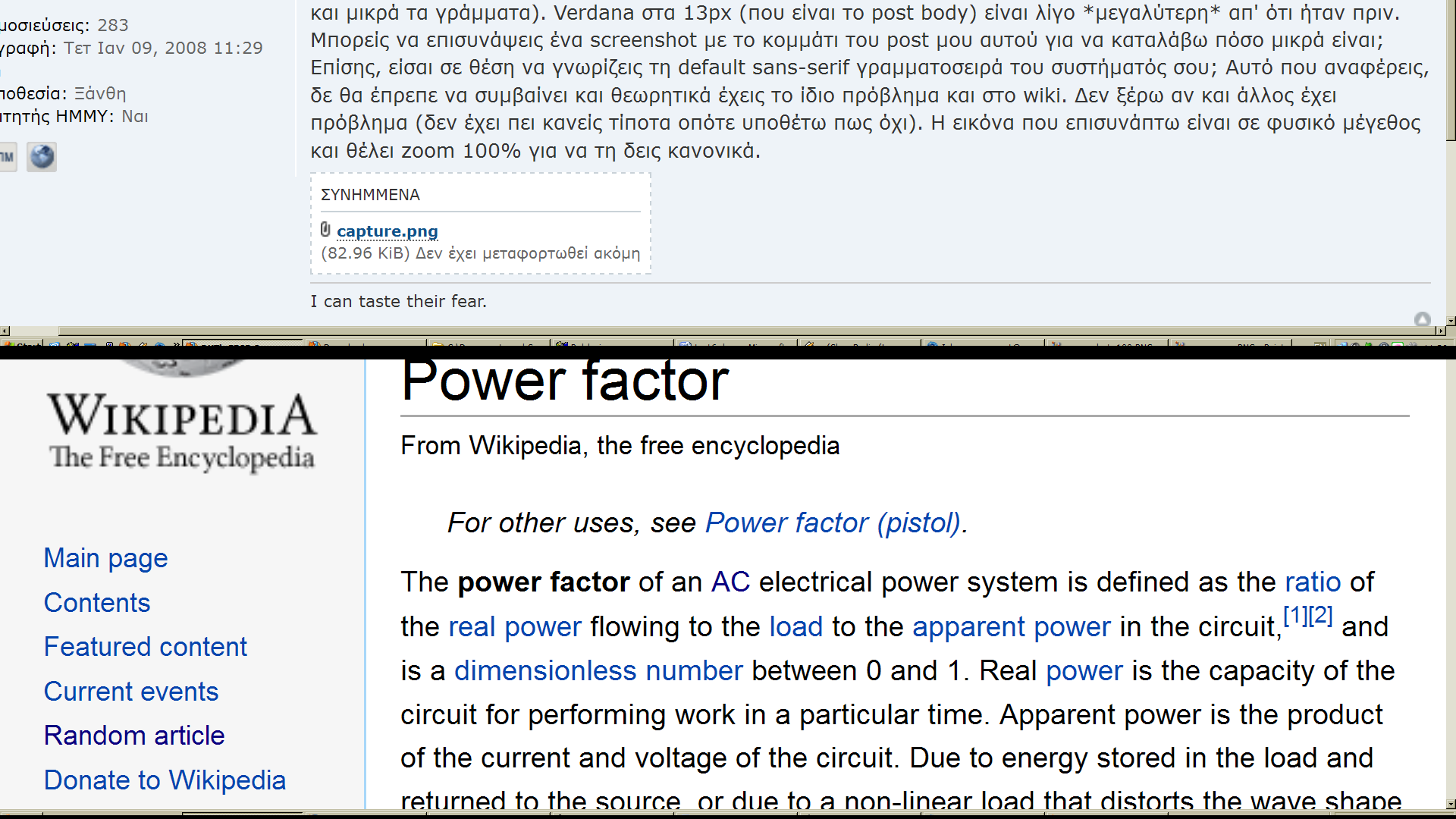 Κατ'αρχάς δεν το βλέπω σαν πρόβλημα αλλά σαν διευκόλυνση όταν είμαι αραγμένος μακριά από το κρεββάτι και χαζεύω στο forum! Όταν είμαι κοντά στην οθόνη δεν υπάρχει "πρόβλημα". Έχω συνηθίσει να δουλεύω με το ζουμ οπότε δεν με ενοχλεί αυτό, η διαφορά με wiki είναι ότι όσο και να ζουμάρω απλά μεγαλώνουν τα γράμματα χωρίς να εμφανίζεται οριζόντια μπάρα κύλισης. Σε σχέση με το wiki, θα έλεγα ότι η γραμματοσειρά είναι η ίδια σε μέγεθος όπως θα δεις και στα screenshots. Μην ασχοληθείς περισσότερο με το θέμα, θα το συνηθίσω εύκολα!