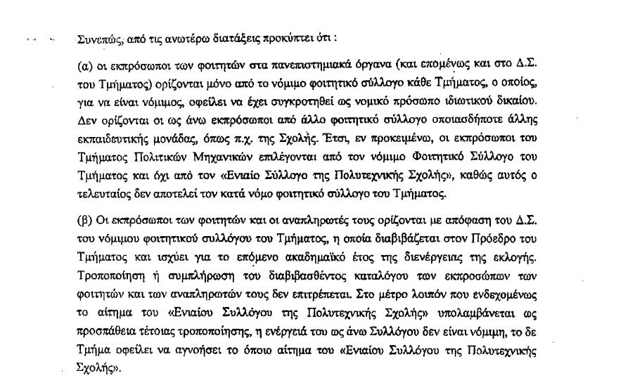 Και μιά διευκρίνηση, αφού η παραίνεση του Stokos προς τον Πρύτανη αναφέρεται στον έλεγχο της νομιμότητας της σύνθεσης της Γ.Σ.