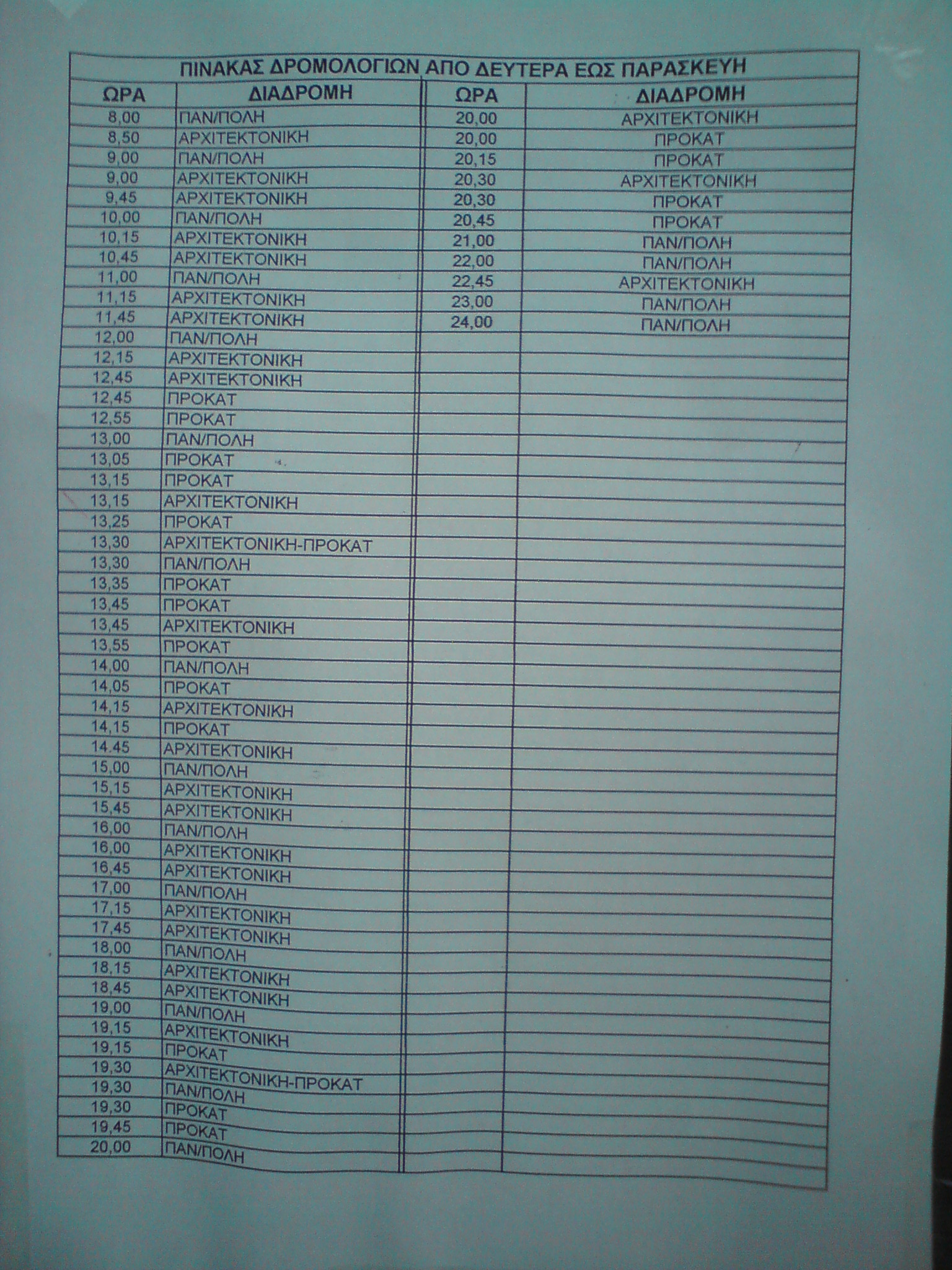 από όσο μπορώ να φανταστώ θα εννοεί τα δρομολόγια από Προκάτ προς Λέσχη τις ώρες φαγητού