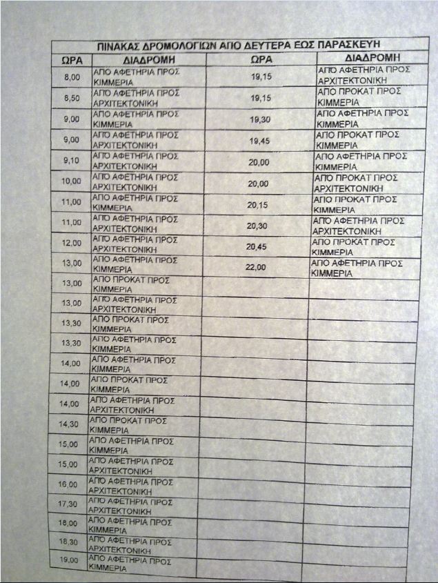 - Αφετηρία - Βιβλιοθήκη - Εστίες: 13:00, 14:00, 15:00, 19:00, 20:00, 23:00