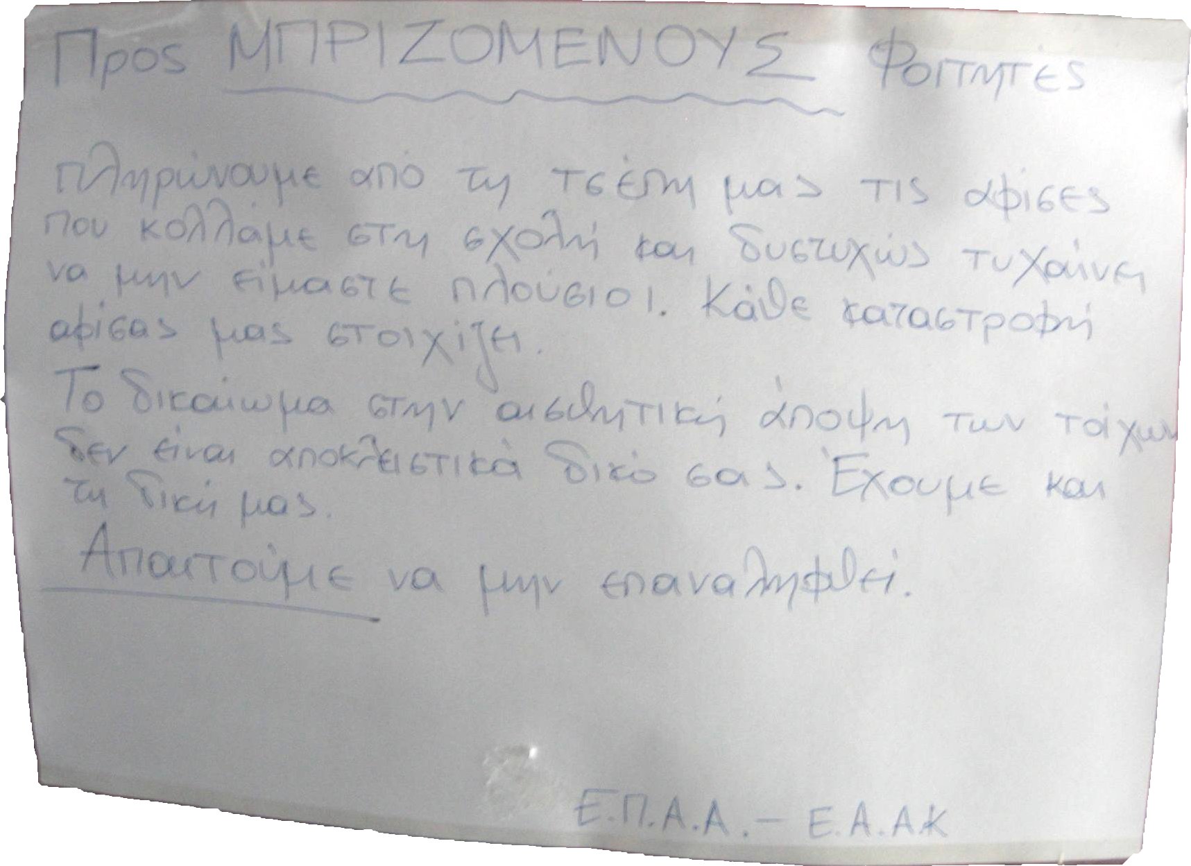 Αφού λοιπόν δίνονται τόσα λεφτά για αφίσες δεν θα ήταν μεγάλο βάρος να δοθούν και για ένα