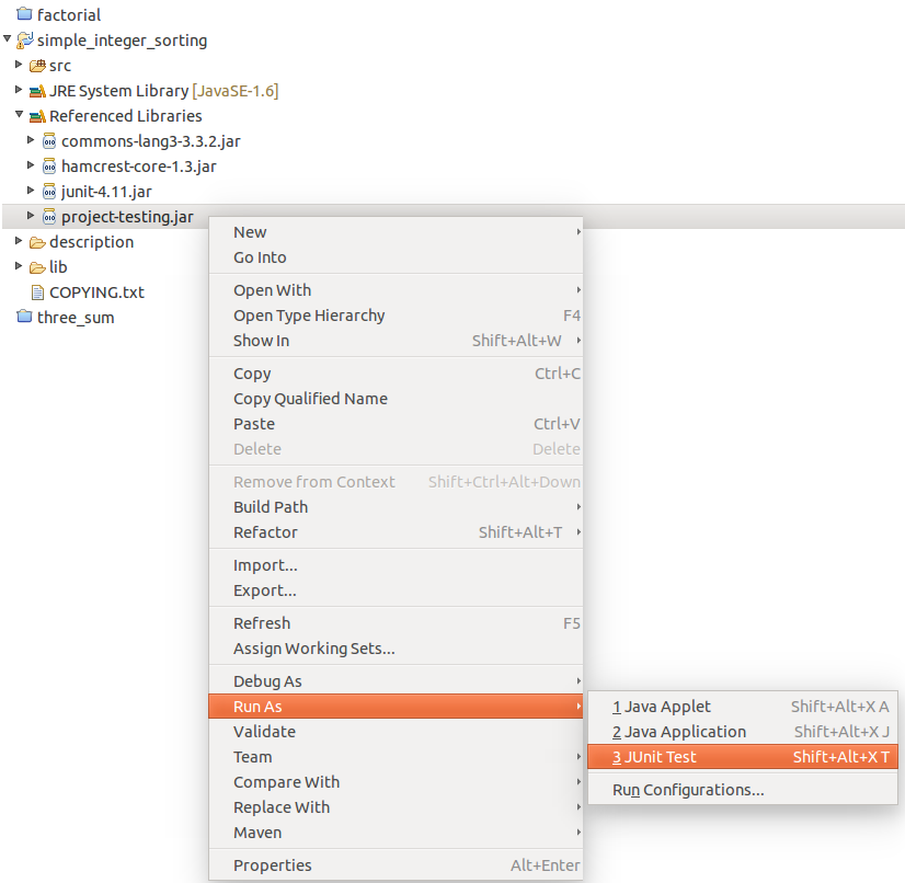 Έχω δοκιμάσει το Run As -> JUnit Test και μου πετάει