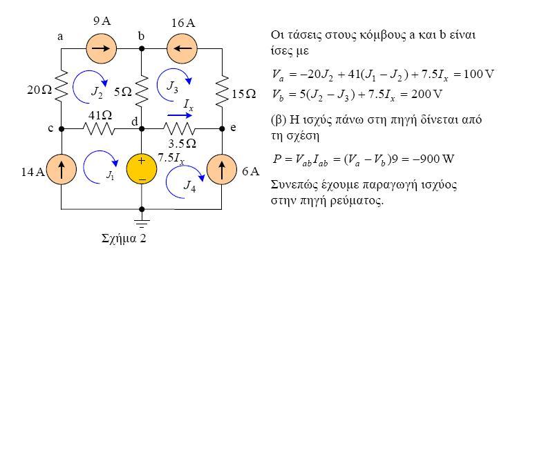 όπου το Ix είναι το ρεύμα της 3.5Ω δηλαδή (16-6)=10Α. Άρα 7,5*10=75V