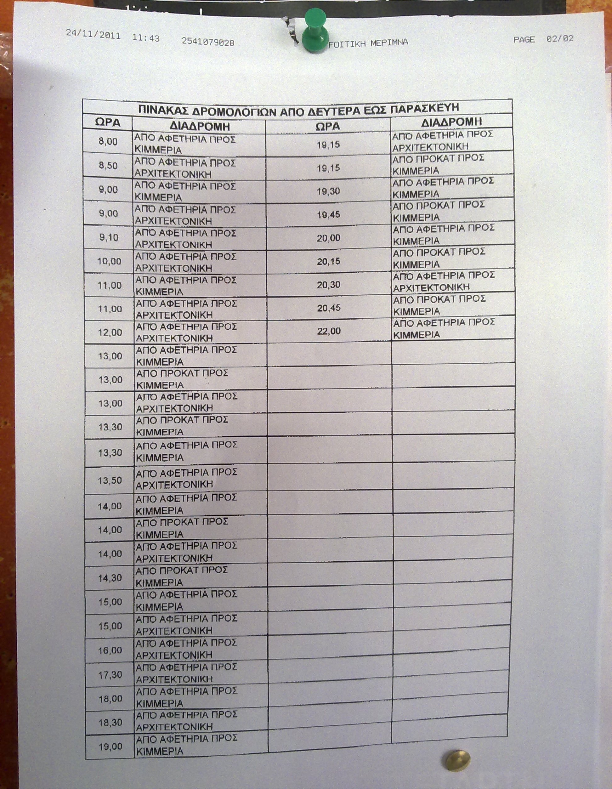 Στη λέσχη υπήρχε μια ανακοίνωση,που έλεγε ότι από 25/11 τα δρομολόγια αλλάζουν..